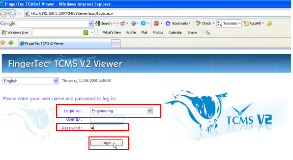 You can allow the head of department to access into TCMS V2 Viewer by using his/her individual password. The head of department can login into TCMS V2 Viewer to view and check attendance of users assigned under his/her department. Follow steps below to configure. |